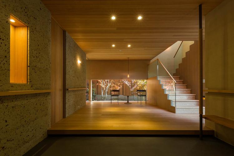 考虑到花园的景观,我们不用看到整个花园,而是通过窗户将景观剪切为每一个自然的片段。在室外门厅的前部,您可以看到脚边的水反射出的绿色;而在入口门厅,您可以看到绿色从底层窗户水平扩散开来。房主希望这所房子不引人注目,并且像花园里的风景一样舒适惬意。我们与Araki景观事务所合作,探索花园与建筑之间的关系。